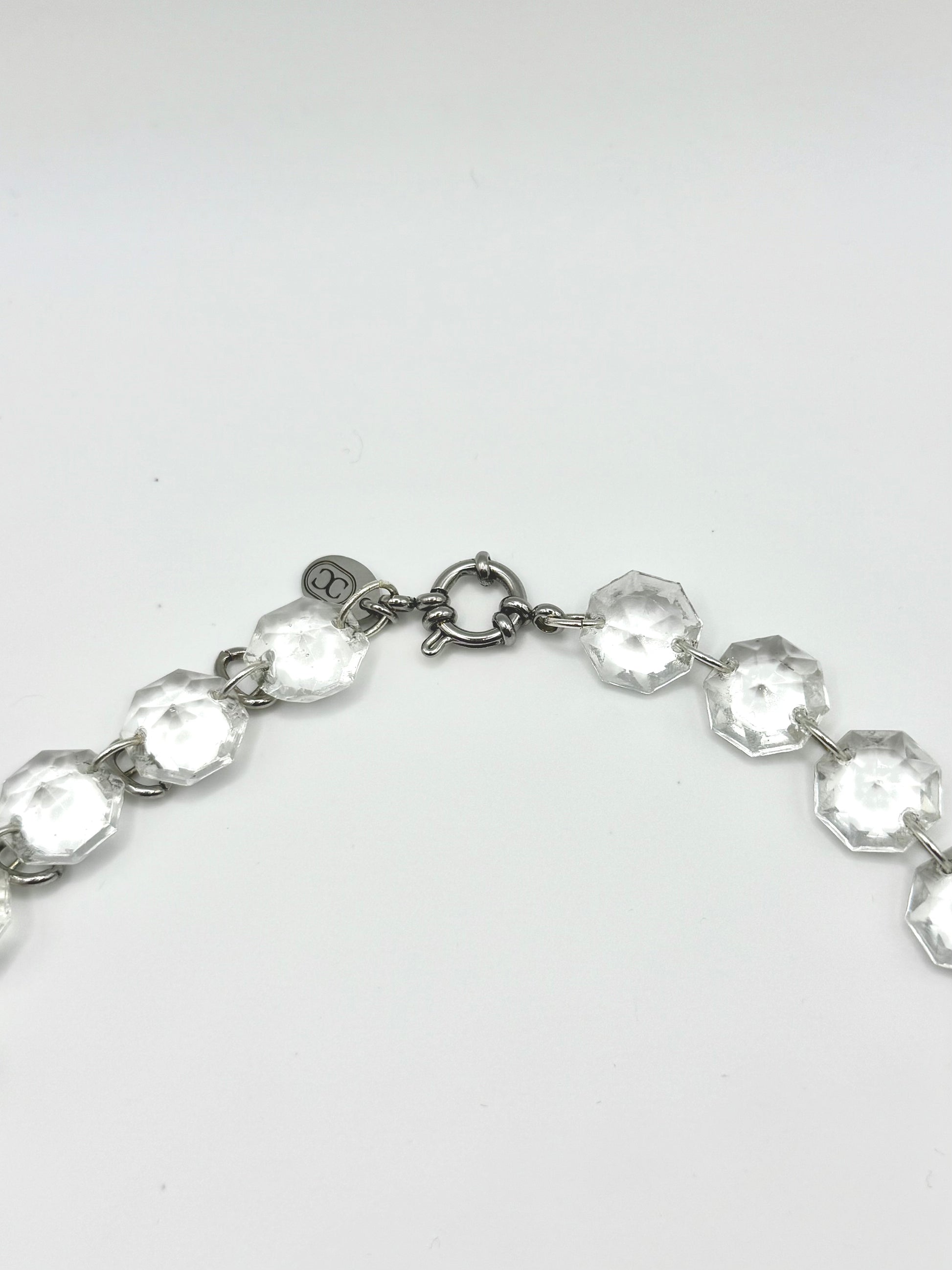 Le collier Heartquake Silver est composé d’une succession de pampilles en verre de lustre vintage reliées une à une, créant un éclat continu et structuré. Au centre, un pendentif pampille en verre gris vintage apporte un point focal sculptural qui renforce le caractère de la pièce. Conçu pour être porté en ras de cou, il présente une belle présence tout en restant confortable.